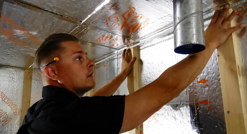 Espoolaisessa omakotitalossa on rakenteilla sauna, ja Aku Jyrkinen tekee katonrajassa mittauksia ennen seuraavaa työvaihetta. Vielä joitain vuosia sitten Jyrkisen työpäivät kuluivat hyvin erilaisissa merkeissä, sillä hän työskenteli pitkään tekstiilialan myyntitykkinä nuorisomuodin parissa.
