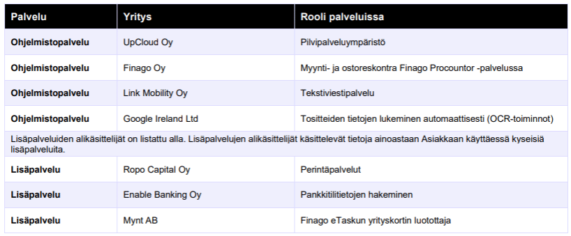Asiakkaan Henkilötietojen käsittelyssä käytetään seuraavia alikäsittelijöitä: